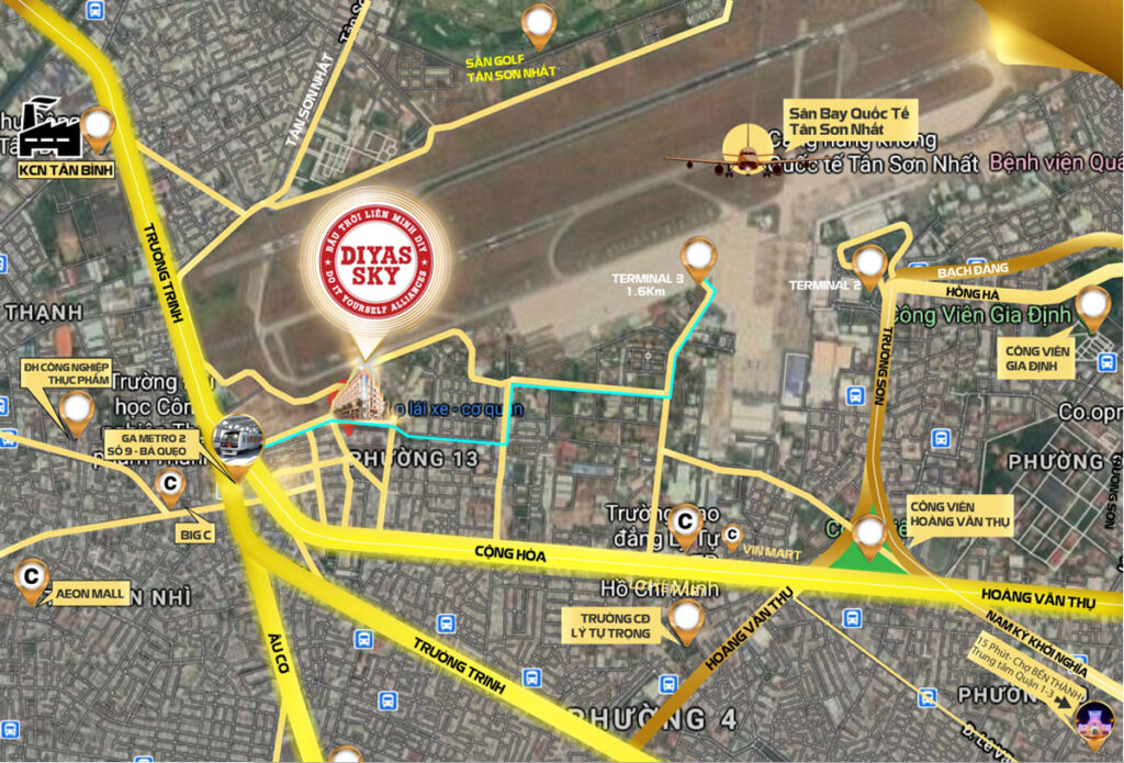 - Số 16 Nguyễn Đức Thuận P13, Tân Bình .Kết nối trực tiếp với đường C12 đi vào nhà Ga T3 sân bay TSN